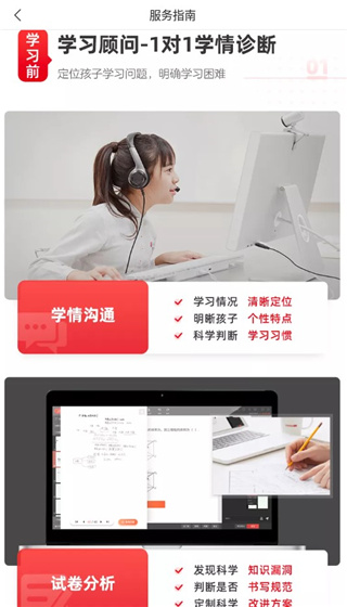 1、【本地陪伴式答疑服务】在全国24所城市提供老师面对面答疑服务,通过科学诊断和学习能力自查工具综合定位学生知识薄弱点,提供针对性解决方案,帮助学生养成良好的学习习惯,化被动学习为主动学习。