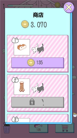 2、清新疗愈的画风能给玩家带来非常精彩的体验,快来养你可爱的小猫吧;