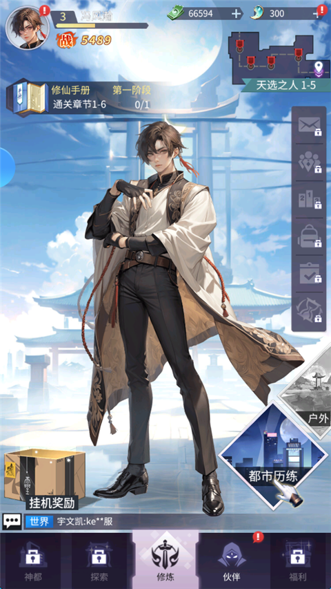1、修真第一天,重心将放在适应游戏的操作、熟悉玩法以及享受故事情节,同时通过推动主线章节的前进来开启更多游戏玩法。