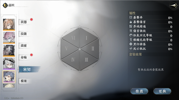 除了命轮,角色还可以携带密契来提升角色的属性。