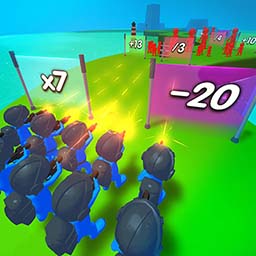 我要当枪神(Gun Master)是一款3D休闲益智类射击小游戏。游戏中玩家将成为指挥者,操控蓝队小兵攻打红队及最终BOSS。玩家在前往攻打的路途中将会随机出现带有益智的数学题或武器的分叉路,所以你需要通过简单的计算选择能让队伍扩大或止损!我要当枪神小游戏采用关卡制,在每一关攻打的途中会获得大量金币,玩家可用来解锁不同的角色和升级武器,提升战斗力。快来用反应力和判断力让队伍扩充,使用各种武器消灭敌人!