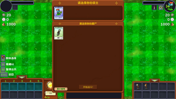 3、选择领主和僵尸炮兵士兵后开始战斗。