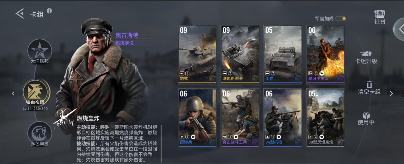 卡组:装甲掷弹兵,老虎,空猎,Mg42,灰熊突击炮,突击战斗工兵,40反坦炮,221车