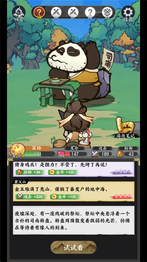 告别枯燥点击!你的每一个选择都可能触发意想不到的剧情。是跟着神秘脚印探寻神兽踪迹,还是谨慎绕开?是鼓起勇气尝一口神农递来的“仙草”,还是礼貌谢绝?用你的现代智慧在山海世界闯出一片天!