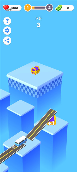 2、玩家将从一辆车开始进行冒险,不断建造桥梁来抵达终点;