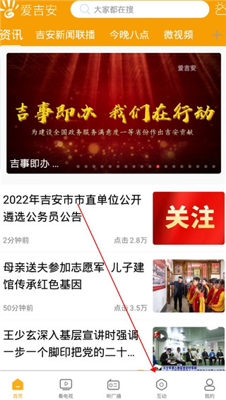 2、在首页点击互动版块
