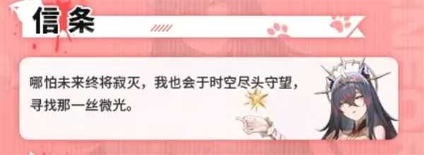 2、信条:哪怕未来终将寂灭,我也会于时空尽头守望,寻找那一丝微光。