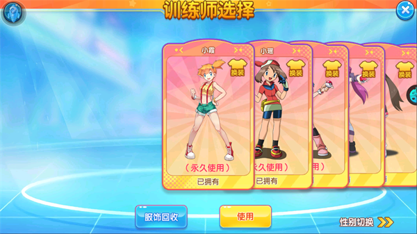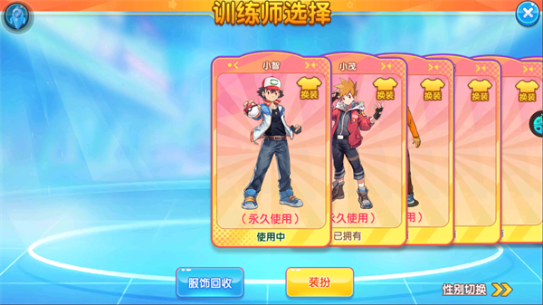 3、在这儿,你可以根据自己的需求不同类型的胎儿性别更换新各种衣服,使你的训练师人物角色更加个性化。