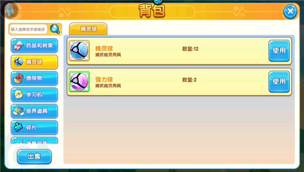 2、点击背包选择不同的精灵球