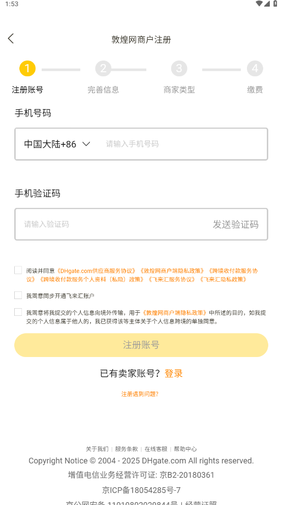 敦煌网商户版App注册流程