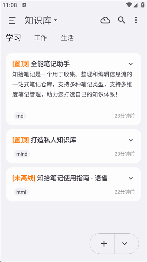 知拾笔记App是一款用于收集、整理和编辑信息流的一站式笔记仓库,它支持多种笔记类型与多维度管理,可帮助用户轻松构建个人知识体系 !软件支持创建txt、markdown、minmap及网页链接等多种类型的笔记,也支持导出为图片、pdf、txt和mht离线网页,用户还可以提取微信公众号、知乎以及今日头条文章正文为markdown,强大笔记格式全方位满足用户需求。