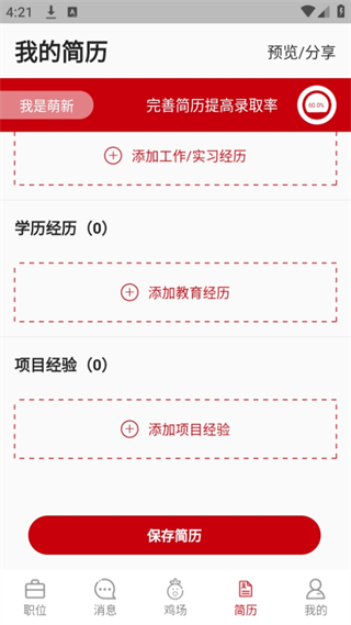 4、添加您的真实信息,越完善hr对简历越信任哦!