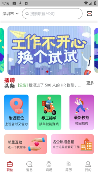 播聘求职app官方版很好的认清了这一个缺陷,毅然决然地填补了求职app的视屏求职面试功能,保障求职者的权益。与此同时,播聘app有着众多职业招聘,各个城市岗位数量以及质量均非常良好,同时还又明确的求职安全保障,不用再怕被坑,被刷kpi了。