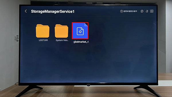 4、进入后,再找到【存储设备】里的【外接存储】,找到当贝市场乐视版的文件,点击进行安装即可。