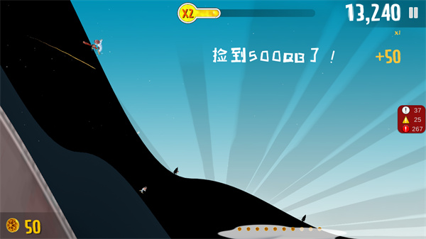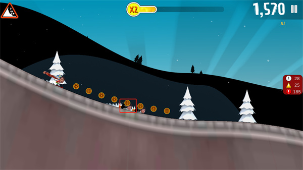 4、玩法需要不断滑雪,躲避途中的各种障碍物,不断获取金币,赢取最终的胜利。