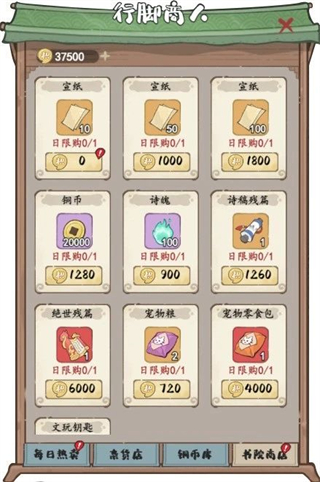 2、每日热卖和书院商店免费可以获取10宣纸,总计可以获取20宣纸