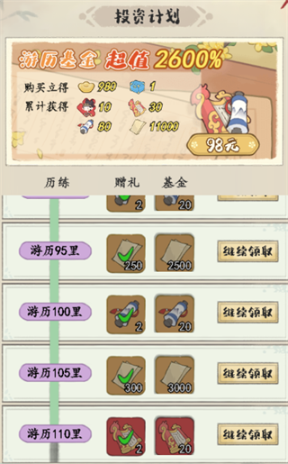 1、【礼包】-【投资计划】-【外出】内每达成一个进度即会解锁对应进度的奖励,奖励内会有基础宣纸奖励,如果想要更多的宣纸,可以按需求考虑购买进阶奖励