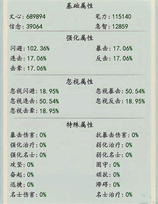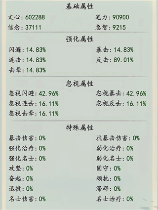 如:点击乙级悬赏-江湖骗子右下角“详”字可查看到其二维属性主要是[反击]较高,忽视属性主要是忽视闪避和忽视暴击