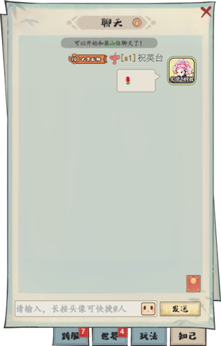 各位文人墨客可向心仪的玩家发起结缘邀请,双方同意后可结为知己结缘需要双方消耗结缘信物“同心结”,墨客们可在行脚商人处使用元宝购买“同心结”哦