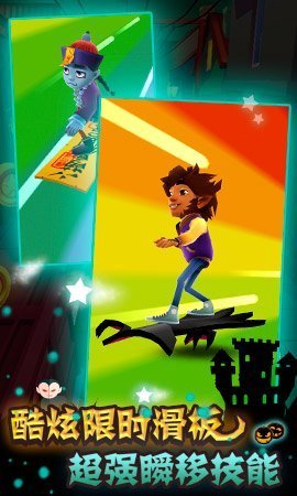 除了新场景和新角色,《地铁跑酷》特兰西瓦尼亚版此次还推出了两款“灵感”十足的帅气滑板——咒符滑板和幽灵滑板。听说,选择僵尸鬼鬼上阵与脚踏咒符滑板是绝配哦!而幽灵滑板的造型创意来自吸血鬼的披肩,黑色与浆果色的奇妙搭配,满足玩家对吸血鬼文化的全部幻想,还在等什么?快来领略炫黑风采驰骋黑夜!