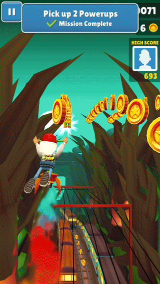 收集硬币是获取高分和购买角色、道具的重要途径,要尽可能多地收集硬币。