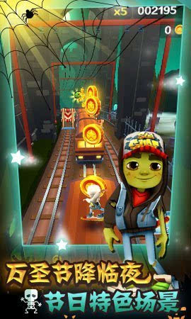 《地铁跑酷》特兰西瓦尼亚版围绕万圣节的惊悚气氛展开,来到这里你将置身诡异的黑夜,轨道间若隐若现的鬼火及白面雕塑伫立的隧道,绝对让你尖叫万分!特兰西瓦尼亚是座充满都市传说的城市,吸血鬼鼻祖德古拉伯爵的故乡便是于此,吸血鬼城堡、罗马尼亚哥特式建筑等众多神秘的元素都吸引着猎奇者的目光。