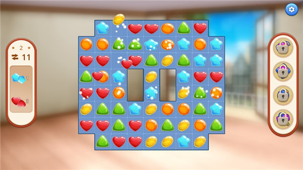 1、操作简单,按照游戏中的手势提示、箭头提示、图标提示等等去点击、滑动操作。2、完成有趣的三消挑战,获得金币。
