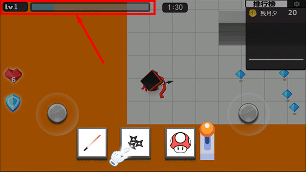 4、上方的经验条满时,即可升一级,然后会随机刷新出三个技能,玩家可以根据自身需求选择其中一个;