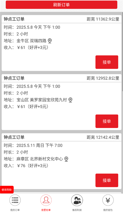 超级阿姨端App中家政阿姨接订单后在订单详情可查看你的个人订单详情,在手机中问询详细的服务地址,帮助阿姨更好的与顾客沟通,完成订单后等待顾客验收后,即可获得订单报酬进行提现。