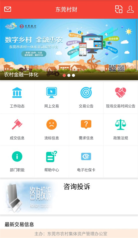 5、一般市民公众可登入东莞村财及时获知东莞农村集体经济的政策、消息要闻、资产交易公告和查看网上交易过程。