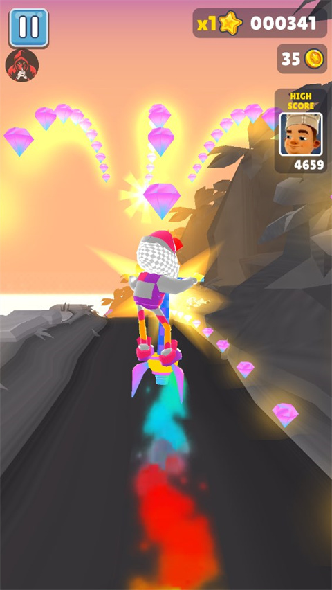 4、随机应变沉着应对,学会默数滑板的消失时间,以及优化跑酷路线(何时放开的捡道具、游戏币,何时选择安全路线为主)不要顾此失彼。