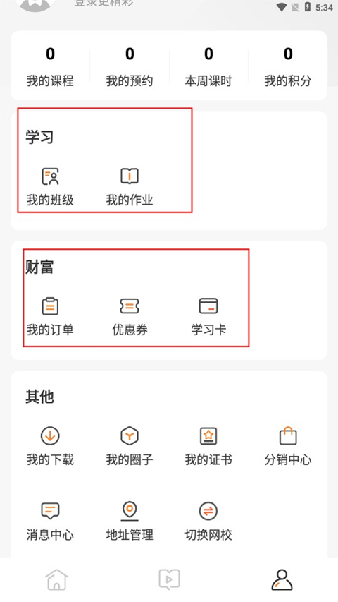 4、点击进入我的,这里为用户提供了很多实用的学习功能板块。