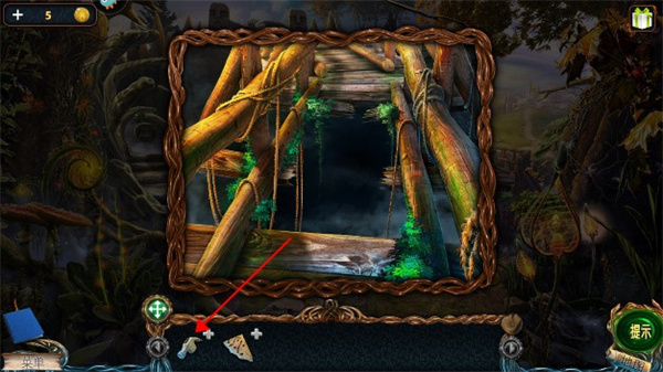 9、拿完后,再次点击桥。点完后,先放木板,然后放钉子,最后用铁锤修复桥就能去到对面了。