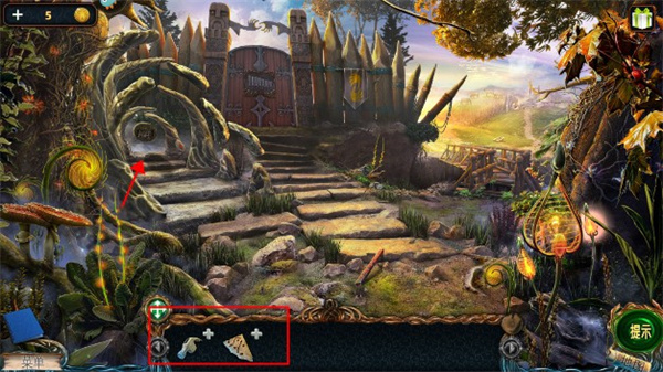 4、接着点击桥,先点开桥旁的失土手稿,然后拿起手稿下面的榔头。