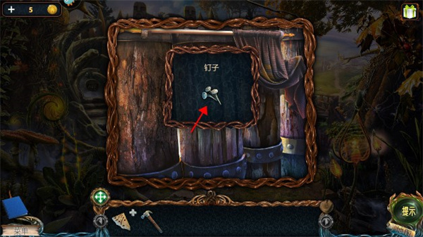 7、得到铁锤后,点开手印那块布,先用铁锤拿到钉子。