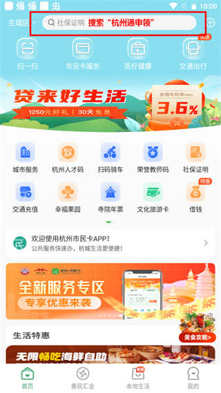 1、市民卡APP首页搜索“杭州通申领”