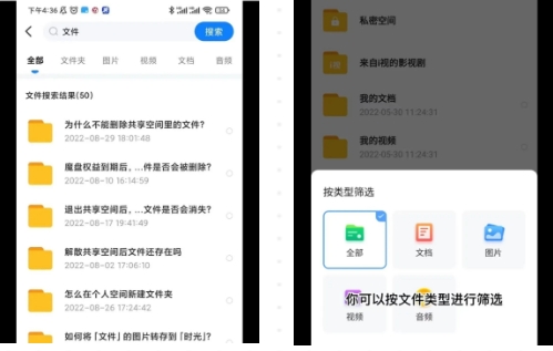 3.个人文件还有照片AI智能分类功能,点击【搜索】通过关键词或按【文件类型】可进行快速查找。