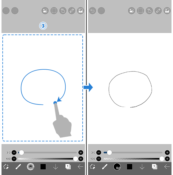 绘制在③[ 帆布 ] 只需用一根手指轻扫即可。
