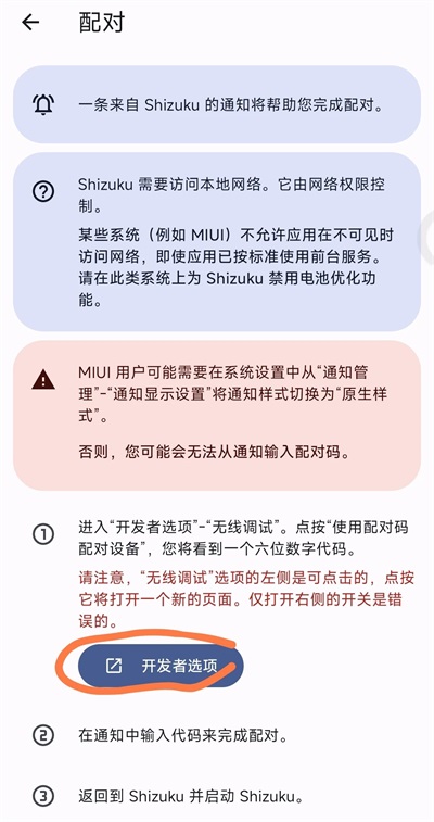 1.在Shizuku首页「通过无线调试启动」模块中点击「配对」