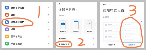 在系统设置的“通知管理”-“通知显示设置”将通知样式切换为“原生样式”。
