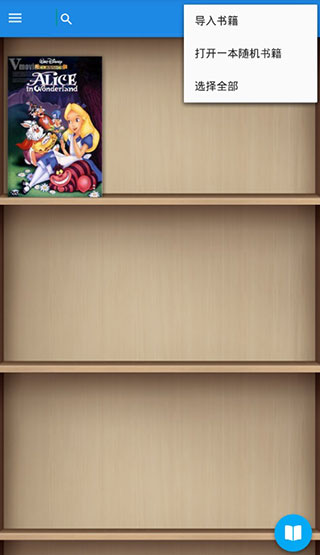 3、点击书架页面右上方的按钮,就可以选择“导入书籍”功能,搜索本地书籍或者搜索书架上的图书了。