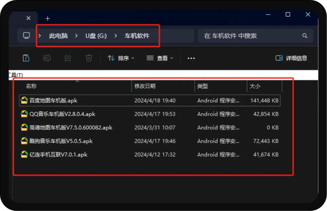 车机端打开文件管理(或者ES文件管理软件)或者APK管理器