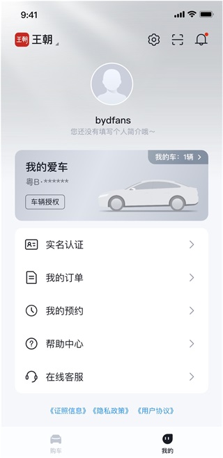 1.登录比亚迪APP,进入我的,在我的车辆中选择车辆授权