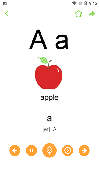 2、以字母篇为例,点击下发中间麦克风选项,可以实时朗读当前字母或者单词。