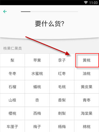 3、选择具体的水果种类,小编以“黄桃”为例