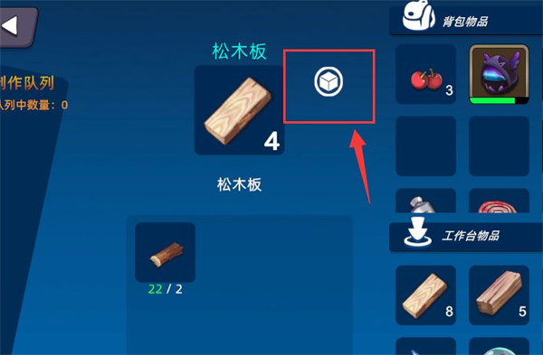 松木板制作好后,点击这个图标将加工好的松木板拿入背包