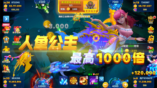 4、人鱼宝藏:附带人鱼宝藏,击杀人鱼BOSS后开启转盘抽奖