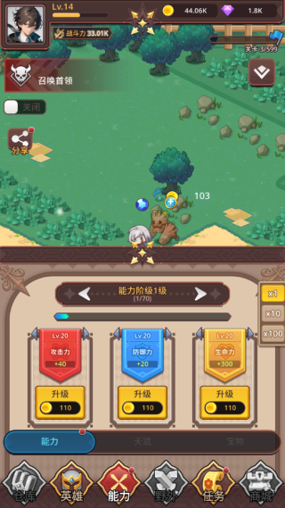 操作起来也很简单,长按滑动就能控制角色移动,还有自动战斗功能,省了不少时间。击败小怪后召唤大BOSS的感觉特别酷,过关的时候很有满足感。英雄升级和能力提升的系统设计得也挺合理,每次变强都很有动力继续玩下去。