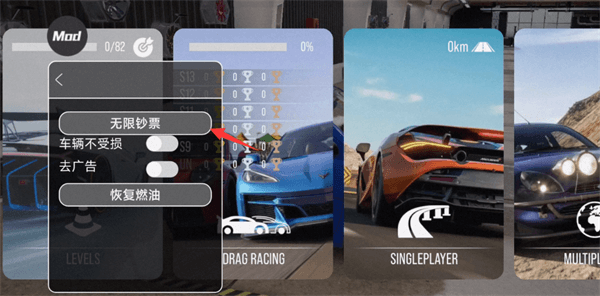 2、还可以开启车辆不受损、恢复燃油等功能;