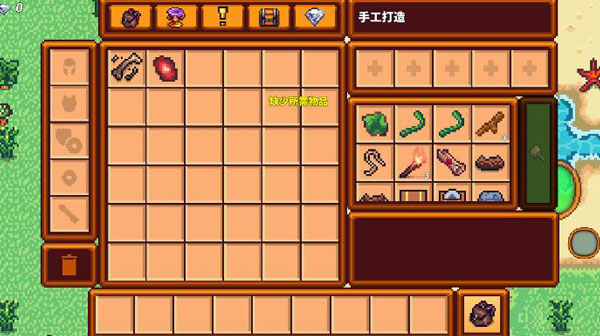 4、播种好以后,过不了多久,种子就会发芽了,为了种子能更快的发芽和成长,我们可以制作一个水壶,用来给土地浇水。